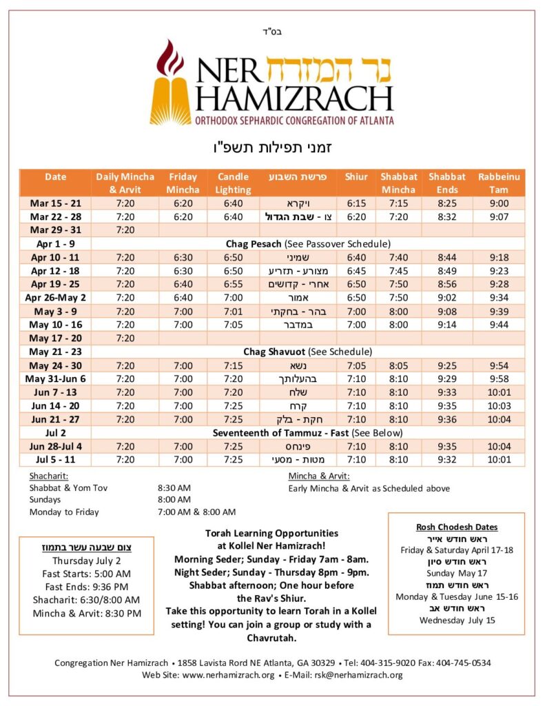 NER HAMIZRACH ZMANIM There is a time for every matter under the heaven. 5786 Kollel Class Schedule – click to view 5786 Kollel Class Schedule5786 ZmanimPassover Schedule5786 Kollel Class Schedule View larger / Download5786 Zmanim Passover Schedule View larger / Download Find your daily zmanim at MyZmanim.com.